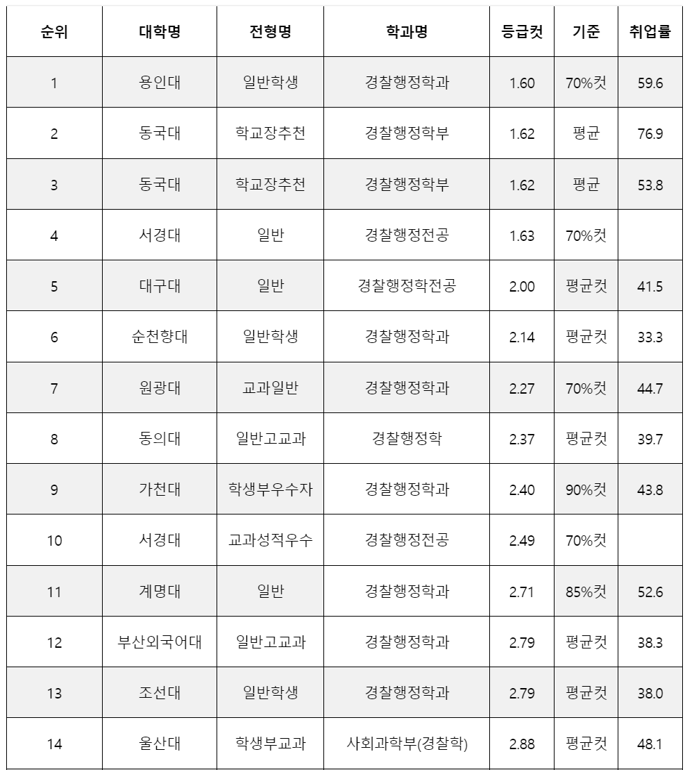 경찰행정학과 취업률과 등급컷