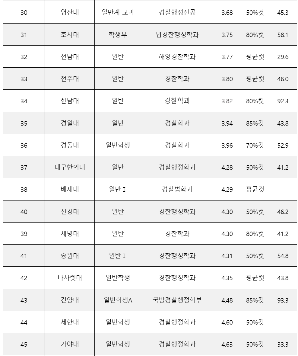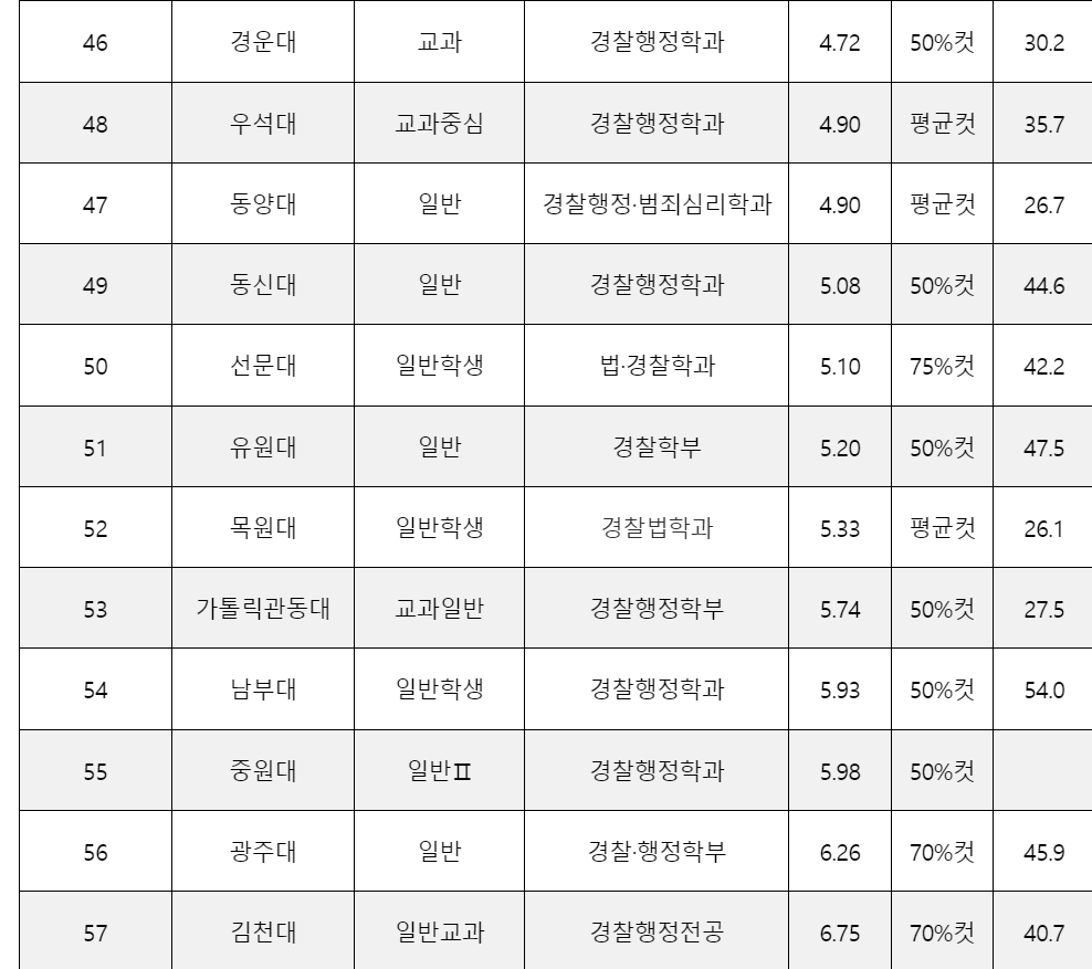 경찰행정학과 취업률과 등급컷