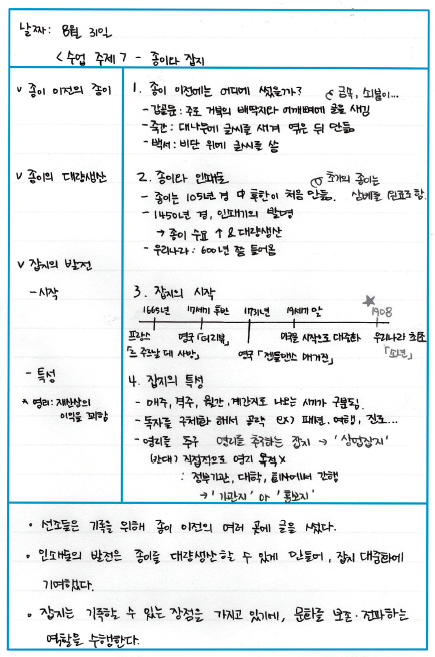 필기도 기술입니다. 미국 코넬 대학교에서 개발한 코넬 필기 시스템(Cornell Note Taking System)은 노트, 단서, 요약 세 가지를 포인트로 효율적으로 노트필기를 할 수 있도록 알려줍니다. 노트는 책을 읽거나 강의를 들으면서 핵심 사항 위주로 필기하기, 독서나 강의가 끝난 후 질문을 적고 키워드 위주로 정리하기, 배운 내용을 요악하기 등으로 구성되어 있습니다. 코넬 필기 시스템 활용법은 다섯 가지로 압축할 수 있습니다. 기록하라, 질문하라, 암송하라, 오래 생각하라, 복습하라, 이렇게 다섯 단계입니다.