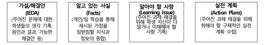 4. 소집단 협동학습으로 이루어집니다. 문제 해결을 위해 팀별 협동 학습으로, 학생은 다른 사람과의 공동 작업을 통해 다양한 관점을 습득하고 문제 해결의 전 과정을 서로 협력하여 풀어나가게 됩니다.