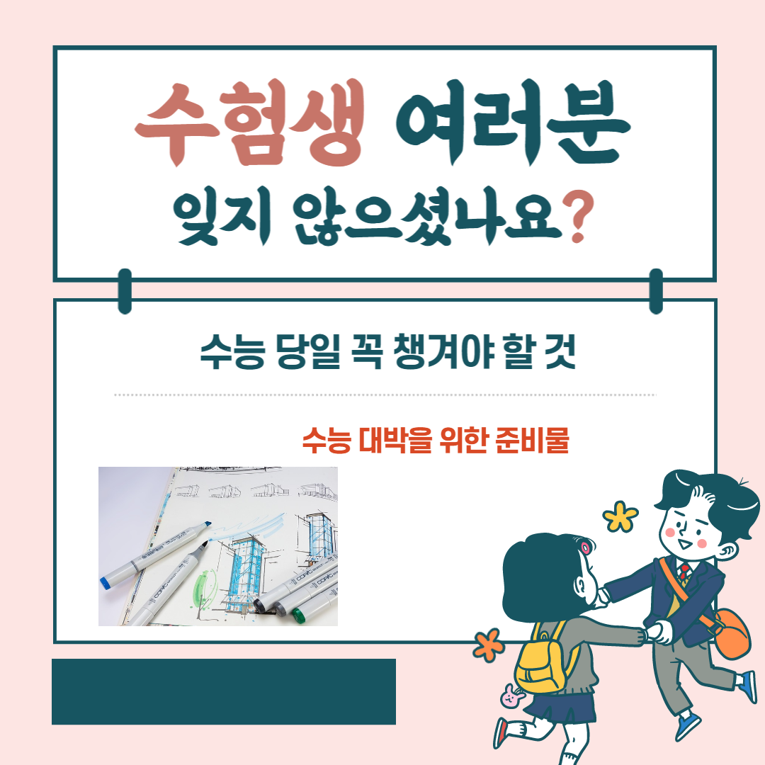 오늘은 수능 당일에 꼭 챙겨야 하는 준비물과 주의점에 대해 알아보겠습니다.