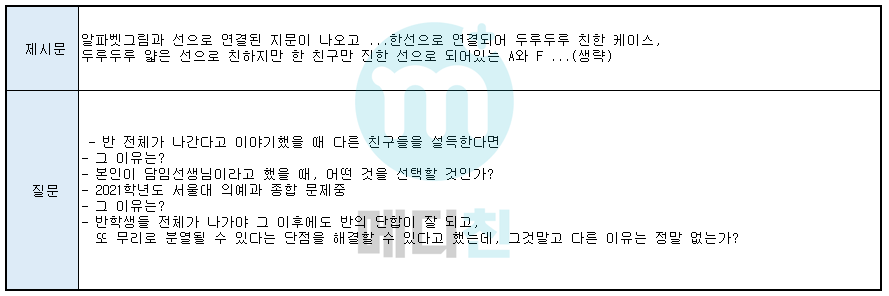 그렇지만 최근에 대학들은 분석과 추론 지문을 늘리고, MMI와 더불어서 제출 서류 질문이 조금 더 많아지는 것 같습니다.