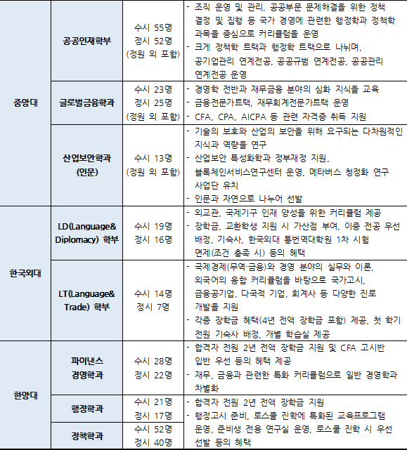 주1) 전형별 모집 인원은 정원 내 인원을 기준으로 함
