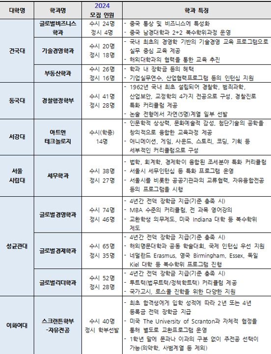 주2) 서강대 아트앤테크놀로지 학과, 이화여대 스크랜튼학부는 인문, 자연 공통선발 모집단위임