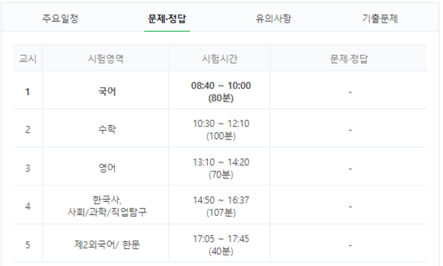 아래는 2023학년도 대학수학능력시험 시험시간입니다.