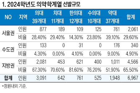 2024학년도 의약학계열 선발 규모 분석