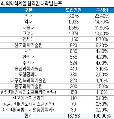 경쟁관계 SKY 등 주요대 6430명 선발, 의약학 합격권 전국 1만3153명 수준으로 봐야